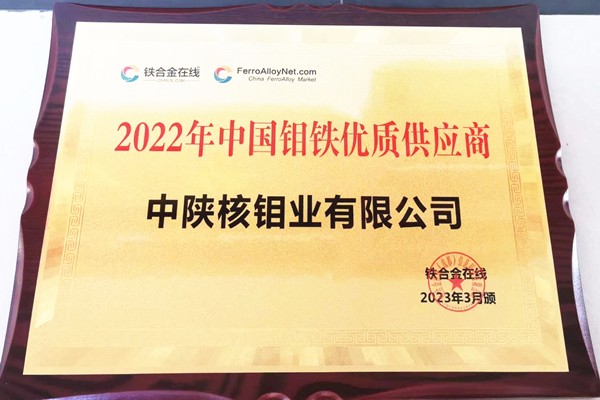 [2023-03-09]中陕核钼业有限公司荣获铁合金在线2022年“中国钼铁优质供应商”...近期,由铁合金在线主办,中陕核钼业有限公司等多家企业协办的2023年中国钼产业发展论坛大会在福建省宁德市召开。中陕核钼业有限公司荣获铁合金在线颁发的2022年“中国钼铁...