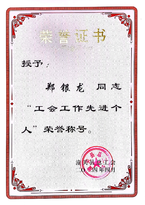 郑银龙不断加强个人思想政治学习和分会业务知识的学习,工作中勤勤恳恳,时时以为职工服务为宗旨,积极维护职工合法权益,积极组织各类活动,不断助推提升职工幸福感、获得感;处处以党员标准要求自己,充分发挥党员模范带头作用,树立起良好的工会工作者形象,为钼业公司业务发展和分会工作奉献了自己的力量,促进了钼业公司高质量和谐发展。