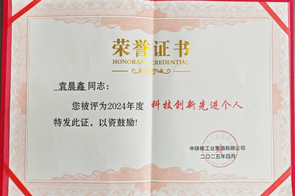 近日,中陕核集团公布2024年度科技创新表彰名单,公司连续第四年荣获“科技创新先进单位”称号,中陕核工业集团测绘院有限公司副总工程师袁晨鑫被授予“科技创新先进个人”荣誉称号。