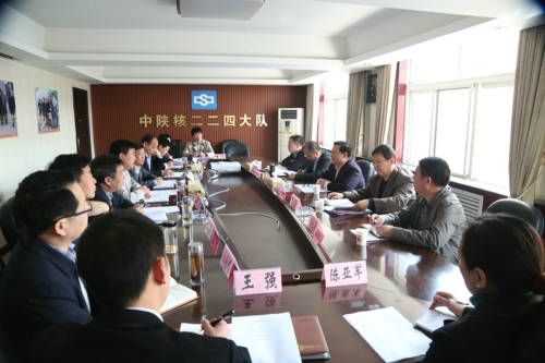 4月10日,中陕核集团监事会主席吴苏平、监事党永军、白冰和审计部部长刘地海、党委工作部副部长张炜一行到大队检查指导工作。监事会采取听汇报、与班子谈话和检查资料的形式对大队2014年工作进行了检查。