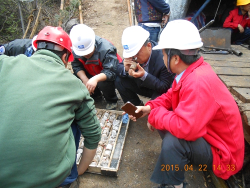 华阳川项目负责康清清首先从目前野外施工进展、取得的成果认识及下一步工作安排等方面做了详细汇报。听取汇报后,专家们来到野外现场,实地检查了地质剖面的测量情况,结合地质现象,提出了宝贵意见;在钻探施工现场,专家们认真查看了钻孔岩芯,详细询问了钻探施工和钻孔地质情况,同时要求项目人员在日常施工中必须做好技术质量的把关和监管工作。