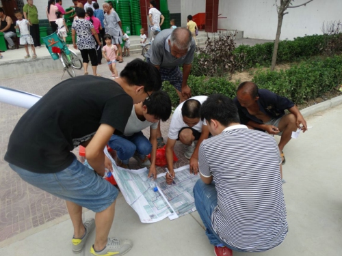 会后,胡祺总经理赶往项目现场,实地查看项目实施情况,详细询问了项目实施中遇到的实际问题,当看到在凹里村工作的项目人员正在向村民耐心细致了解各家土地情况时,胡总对项目人员的工作态度给予了充分肯定;在佑所村,当得知项目进度有困难,历史遗留问题影响了工作进度时,胡总要求加强沟通,并指出了解决问题的办法。