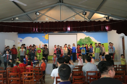 此时已是中午,大孩子们放学归来,列队走进活动大厅,为我们表演了手语操《感恩的心》,大家伴着歌曲一起哼唱,爱与感恩,将我们紧紧相连。