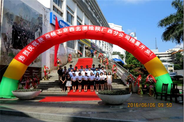 6月6日,陕核西北测绘院省外设立第二家分公司——陕西核工业西北测绘院有限公司广西分公司在广西南宁举行了开业剪彩暨揭牌仪式。陕核西北测绘院总经理胡祺致贺词,对分公司提出了工作要求和殷切希望;分公司经理玉书囊作了表态发言,他表示,分公司全体员工一定不辜负总公司的期望,努力拼搏,争创业绩,为总公司经济发展添砖加瓦。