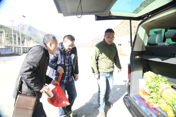孔维国总经理一行为野外职工送来了大肉蔬菜等慰问品,对寒冬时节仍然坚守在一线的职工表示亲切慰问。