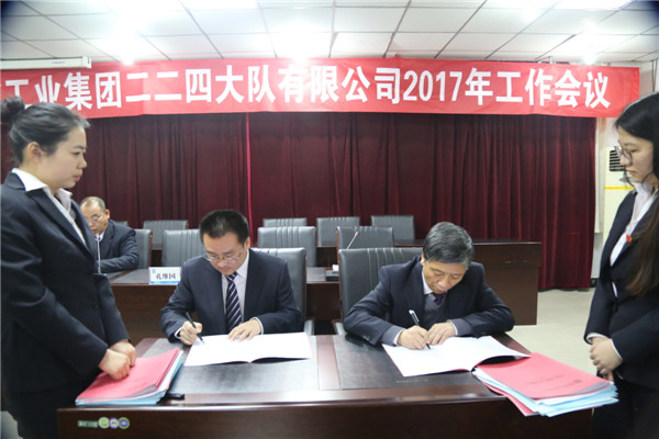 会议通报了2016年度各经营单位、机关部门及附属单位的绩效考核结果,罗总经理代表公司行政,与相关单位和部门签订了生产经营责任书、安全生产责任书、保密工作责任书,吴书记代表公司党委与各党支部签订了党风廉政建设责任书。