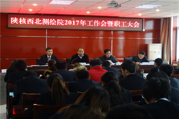 2月8日,陕核西北测绘院召开2017年工作会暨职工大会,二二四大队有限公司党委书记吴杰、总工程师高明及有关职能部门负责人应邀出席了会议,测绘院全体干部职工参加了会议,测绘院副总经理王伟主持会议。