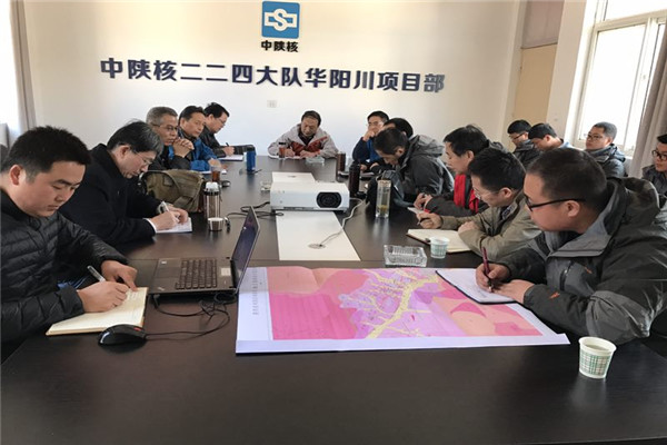 在项目部会议室,王副总听取了项目经理对目前华阳川勘查工作进展情况的汇报,他对项目所取得的工作成果给予充分肯定,对后续工作提出具体要求,一是要切实加强项目综合研究,推进科技创新;二是要高度重视安全生产工作,确保项目生产安全;三是要坚定信心、鼓足士气,加快推进工作进度,保证项目工作质量。