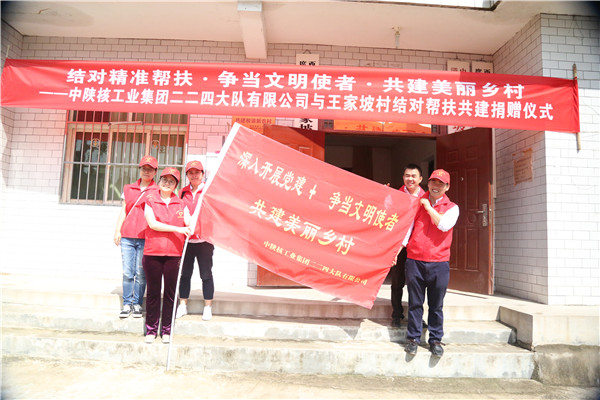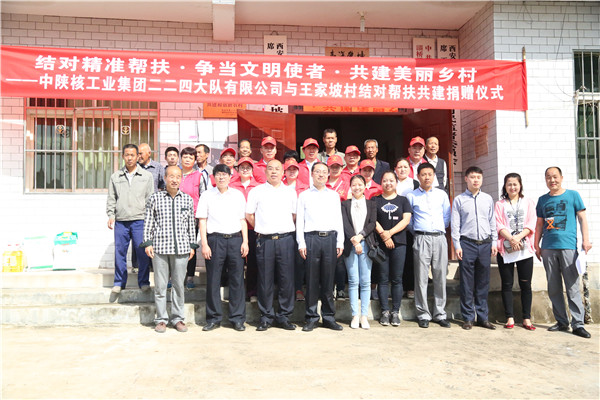 6月6日上午9时,二二四大队与王家坡村结对帮扶援建仪式在村委会举行。公司党委书记吴杰,党支部书记、志愿者代表和王家坡村党支部、村委会干部、村民代表参加仪式;中陕核集团公司党委工作部部长兼办公室主任张昆峰、西安市灞桥区文明办副主任王元和灞桥街办文明办刘静等应邀出席仪式。灞桥区席王街办派驻村干部吴树田主持仪式。