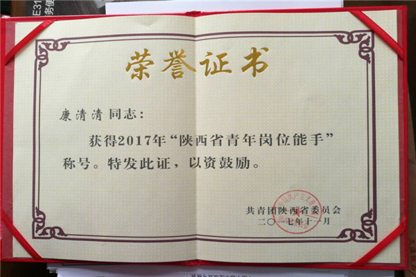 公司喜获“陕西省青年安全生产示范岗”荣誉称号