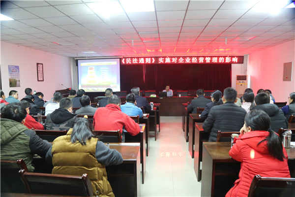 为进一步提高公司广大职工法律意识,维护自身及公司合法权益,1月22日下午,公司特邀法律顾问罗育律师在六楼会议室举办了题为“民法总则的实施对企业经营发展的新影响”法律专题培训。公司各经营单位负责人、项目负责、技术负责及机关全体职工等60余人参加了培训。会议由公司经营发展部部长高玉华主持。