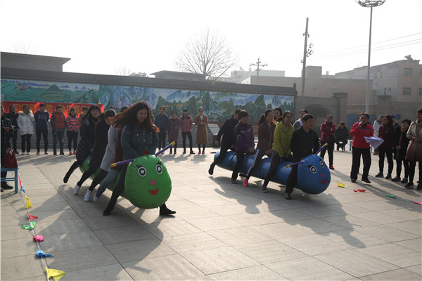 随后,由陈主任宣读活动比赛规则并宣布比赛开始,在裁判员一声令下,每两组队员分别进行了“疯狂毛毛虫”“财源滚滚”“袋鼠运瓜”“快乐大脚”四个趣味活动。每组队员团结协作,你追我赶,使出浑身解数,在有“男神团”参加的小组PK赛中,女神们更加团结同心,都使出了“洪荒之力”,最终力压“男神团”,夺得冠军。观众们兴高采烈,加油声、呐喊声此起彼伏,现场气氛热烈,使整个趣味运动会推向高潮。