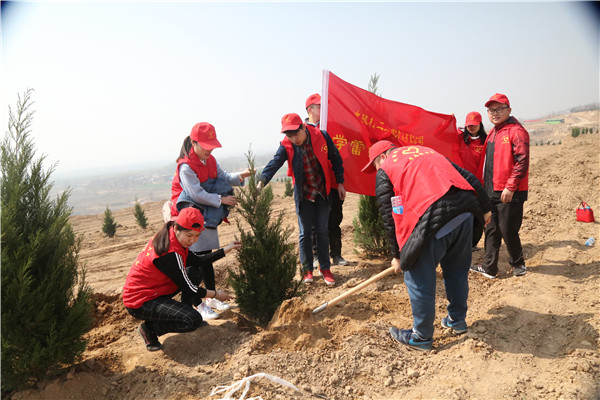 为践行绿色生活、传播绿色理念,3月9日,在第40个植树节来临之际,由共青团陕西省委主办,泾阳县团委、县林业局承办的“?;つ盖缀印っ览鲋泄巍蔽魈獾那嗄曛驹刚咧彩魇痉痘疃阢粝匕参庹蚵奕ρ掖謇蚰唬净煊ν攀∥图磐盼暮耪?,组织10名青年志愿者参加植树活动。公司团委书记蔺啸宇带队。