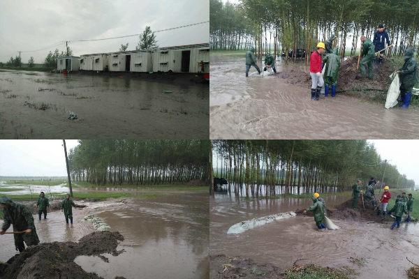 2018年6月14日下午16时许,大庆地区普降暴雨,电闪雷鸣裹挟着狂风暴雨,铺天盖地席卷位于肇东市向阳乡向阳村的公司大庆钻探项目施工现场。