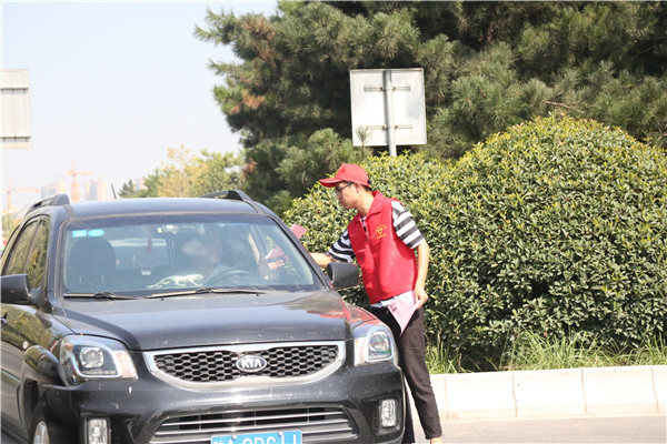 在炎炎烈日下,志愿者们到达世博大道与纺渭路十字路口,对过往的行人和车辆发放“文明礼让当先行”倡议书,提醒广大市民文明出行,文明礼让,进一步提高广大司机朋友主动礼让意识,提升市民出行安全指数,增强市民的幸福感和公司职工的责任感。