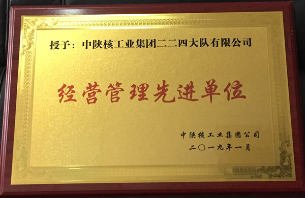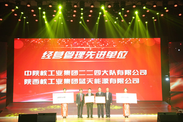 1月16日,在中陕核工业集团庆祝改革开放四十周年暨先进表彰主题晚会上,二二四大队有限公司被集团公司授予“经营管理先进单位”荣誉称号,同时授予中陕核钼业有限公司“创新创业先进单位”荣誉称号,公司党委书记、董事长田社生同志“优秀企业负责人”荣誉称号,公司职工车伟峰、胡祺、陈亚军、胡进平同志“优秀员工”荣誉称号。