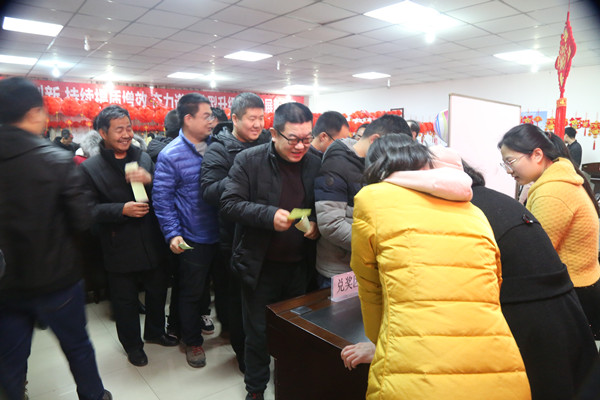 上午九时,公司党委书记、董事长田社生为活动鸣锣击鼓,活动正式开始。活动现场,300个红灯笼连着妙趣横生的灯谜牌有序悬挂。其中有生活常识趣谜、成语字谜、环保知识谜、人名谜、学科谜、地名谜、影视剧谜等常见的谜语类型,融竞技性、知识性、趣味性和观赏性于一体,内容丰富,趣味盎然。大家在灯谜中不停地穿梭,一边讨论一边记录谜题答案。有的人双眉紧锁,绞尽脑汁地思考谜底;有的人争先恐后地与工作人员核对答案;有的人猜对了谜底正在换取纪念品汤圆;有的人在“红包墙”扎到了一个大红包。现场充满着欢声笑语, 大家兴致勃勃,各显其才,构成了一道独特的风景,呈现出一幅其乐融融的景象,浓浓的年味在人群中流淌。
