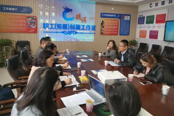 董兴武一行听取了陈冰关于工作室创建的目的、意义及成效等方面的总体介绍,工作室带头人、测绘院总经理胡祺从创新理念、组织架构、科技创新、成果展示、导师带徒等方面进行了具体介绍。双方就工作室创建工作中的经验和做法进行了深入交流,进一步认可了胡祺职工(劳模)创新工作室对企业经济技术、产业发展、队伍建设的带动作用。同时双方就相关业务进行了深入交流,表达了进一步加强沟通交流,弘扬劳模精神和工匠精神,协同进步的意愿。