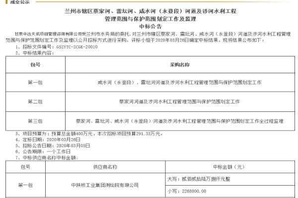 3月30日,捷报传来。中陕核测绘院成功中标合同额为226.8万元的“兰州市辖区蔡家河、雷坛河、咸水河(永登段)河道及涉河水利工程管理范围与保护范围划定工作第一标段”项目,这也是测绘院在疫情防控与复工复产期间中标的第一个项目。