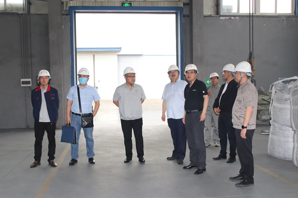 杨百锁总经理一行先后参观了中控室、氧化钼生产车间、硫酸生产车间、钼铁生产车间,认真听取了郭金锁总经理、康清清副总经理关于氧化钼生产工艺、钼铁冶炼生产工艺、硫酸制酸工艺的详细介绍,现场查看了钼精矿原料、氧化钼产品、钼铁产品,并就专业技术人才队伍建设、原料采购、产品销售等进行了深入交流。