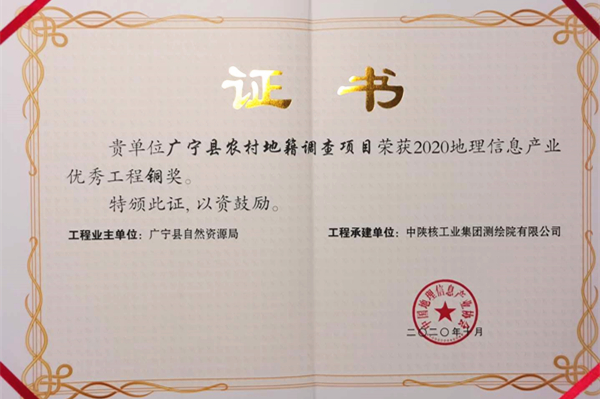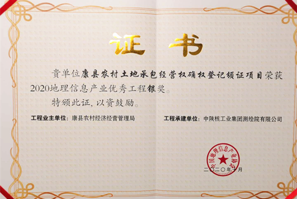10月23日-25日,“迎难而上 锐意进取 促进产业高质量发展”2020中国地理信息产业大会在南宁开幕。二二四大队测绘院在全国上万家地理信息企业角逐中脱颖而出,荣获中国地理信息产业协会“最具活力小型企业”称号,康县农村土地承包经营权确权登记项目、广宁县农村地籍调查项目,分获中国地理信息产业协会“优秀工程奖”银奖和铜奖。