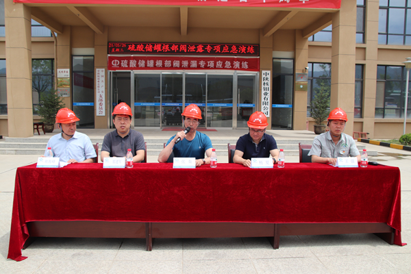 5月26日上午,集团公司生产安全部部长张秦、副部长郭建军深入中陕核钼业有限公司现场督导硫酸储罐根部阀泄漏专项应急演练。公司副总经理杨夏等有关负责人陪同督导。