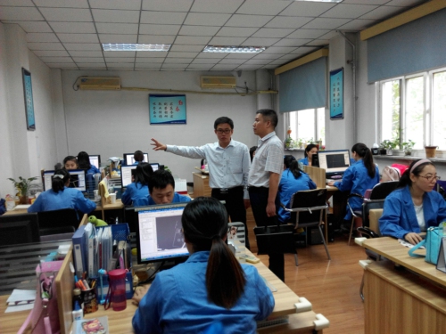航空摄影测绘院院长康荔首先对公司概况、业务范围进行了介绍。随后,胡总一行在康院长的带领下,参观了空三加密室、遥测编辑室、内业制图室等相关内业部门,并对其在地信方面的最新成果进行了观摩?;嵘希郊业ノ痪拖钅可?、开拓市场经营范围以及优化工资劳务分配等进行了深入交流。