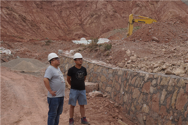 8月13日,公司资产财务部部长栾喆到地质工程公司新疆废渣治理英岗项目检查指导工作。地质工程公司副总经理陈曦等人陪同检查。