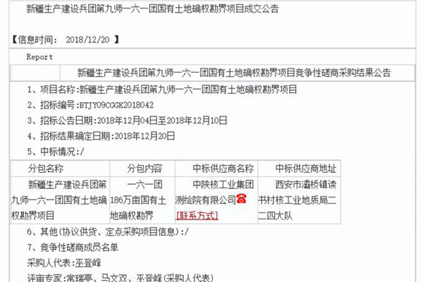 中陕核测绘院成功中标新疆生产建设兵团第九师一六一团国有土地确权勘界项目
