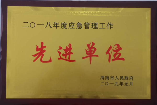 1月7日,渭南市人民政府正式授予中陕核钼业有限公司“2018年度渭南市应急管理先进单位”,同时,生产技术部部长车伟峰荣获“渭南市应急管理优秀值守员”荣誉称号,安全环保部部长李飞龙荣获“渭南市应急管理先进工作者”荣誉称号。