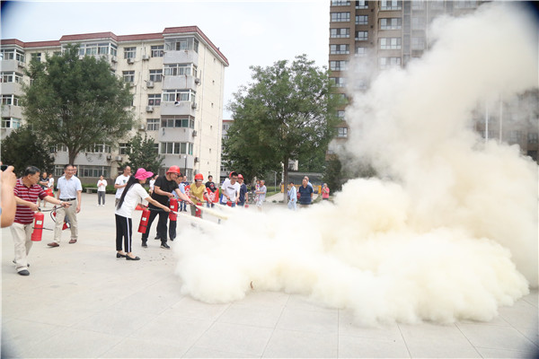 王老师讲课内容丰富,专业性强,言语通俗易懂,详细讲解了在火灾隐患诱因、火灾自救常识、灭火器材使用方法等,案例典型,发人深省。讲座结束后,参加人员在王老师的指导下,在小区中心广场进行了消防灭火演练。小区居民积极参与,按照操作规范成功将火源熄灭,顺利完成演练全过程。