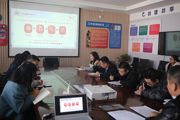 12月11日下午,测绘院党支部组织支部全体党员和入党积极分子在会议室开展集中学习,认真学习、深入领会党的十九届四中全会精神。支部书记胡祺主持会议。