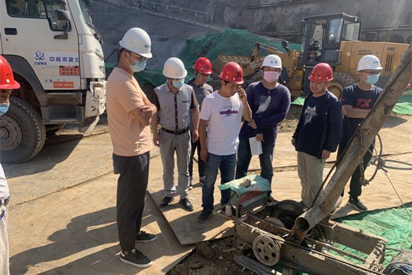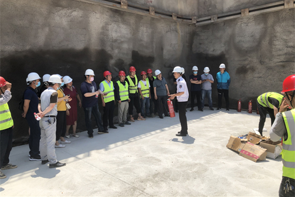 检查组全面检查了基坑内钢筋加工棚、工程桩施工、各个配电箱等重要部位,并对基坑坡道、周边防护栏、降水井等进行了仔细排查,对检查中发现的问题,检查组要求施工单位限期整改到位。随后,联合进行消防应急演练。演练首先对消防知识和消防器材的使用进行了详细讲解。培训后,全体职工进行实践操作,对准演习火场中火苗的根部方向,使用干粉灭火器进行灭火。整个过程规范有序,正确得当。